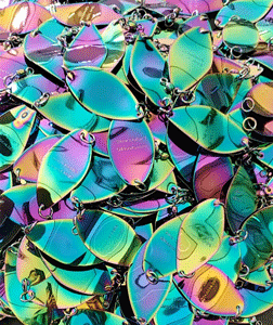 Similar to a Needlefish #5. Chrome with a bright BLUE stripe on top of one side. |